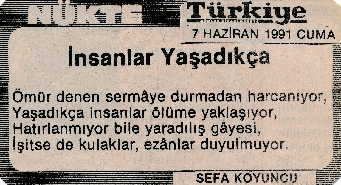 Sefa KOYUNCU I Türkiye Gazetesi – 7 HAZİRAN 1991